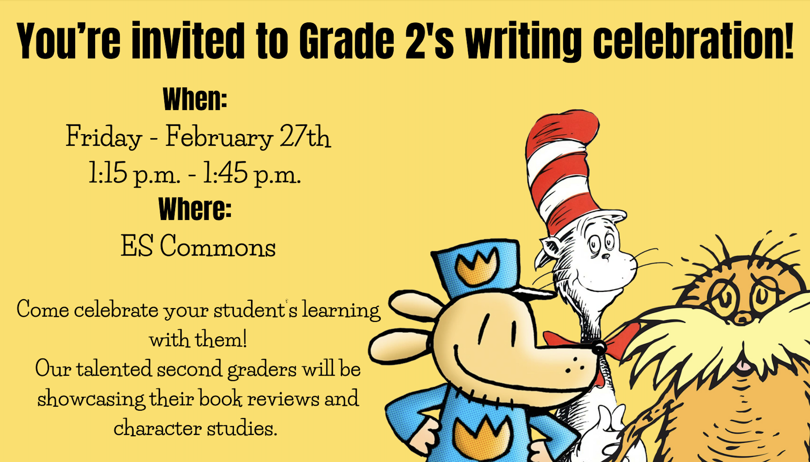 Recently, G2 students shared their opinion writing pieces with our community. The ES Commons was filled with energy and excitement during the Grade 2 writing celebration, as students shared their work and learning. It was wonderful to listen to students share their understanding from the unit—from exploring character traits and outlining the story mountain to developing opinions and articulating their favorite scenes. It was also lovely to see many of our parents engaging with students in this celebration. Thank you to the whole G2 team for the thoughtful preparation and guidance you provided to help students bring together these different components and share with an audience. The students were so proud to share their learning in reading and writing. This was a great showcase!